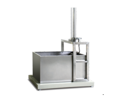 本儀器可模擬雨從水平方向噴向垂直固定在不銹鋼槽內(nèi)的待測(cè)織物。試樣背面緊貼著標(biāo)準(zhǔn)吸水紙(測(cè)試前后需稱重)。一定高度的水柱通過(guò)標(biāo)準(zhǔn)噴嘴噴射形成雨,而水柱可由600mm(24英寸)以300mm(12英寸)的增量調(diào)至2400mm(96英寸)。